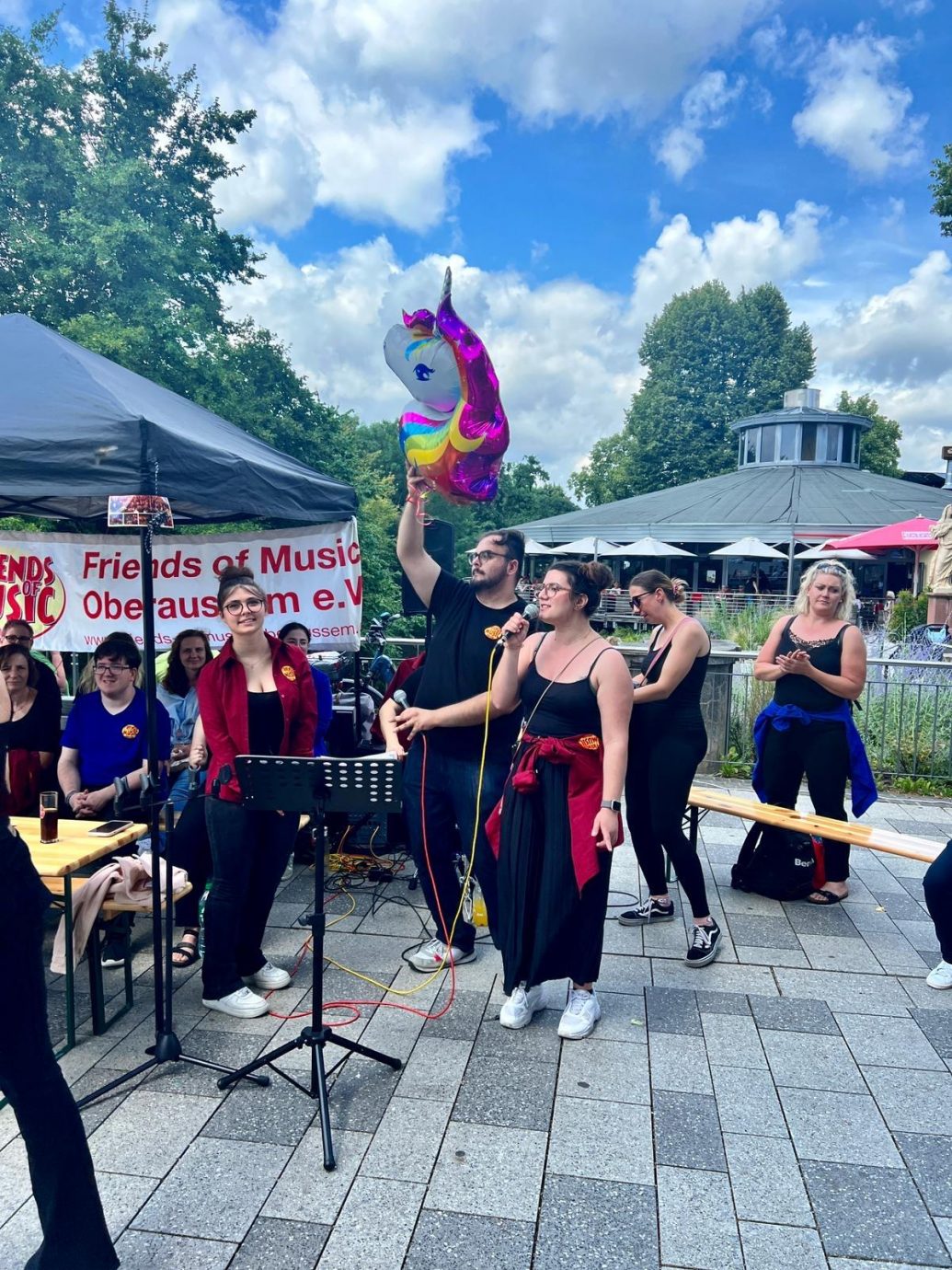 Auf der Hauptbühne durften wir außerdem das Tagesprogramm eröffnen und unsere Chorleiterin Tabea Scholdan setzte die Moderation nach dem Auftritt fort. Für uns ging es am Stand weiter. Es ist schwer zu beschreiben, woran es liegt, aber spontane Konzerte in der Fußgängerzone sind ein anderes Gefühl als Proben oder Auftritte.
