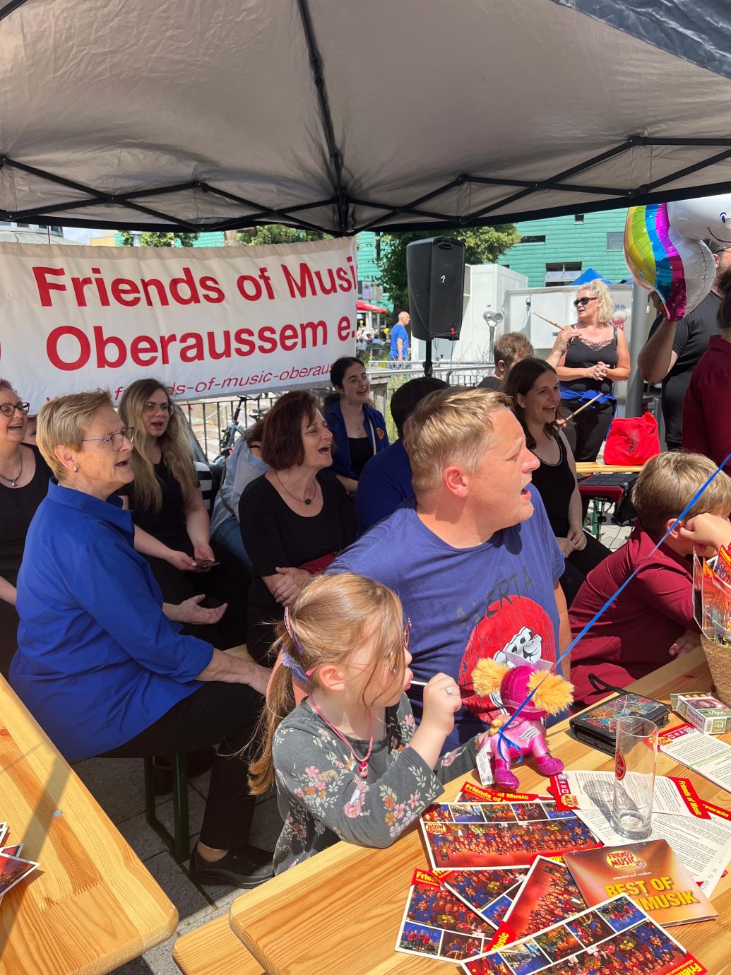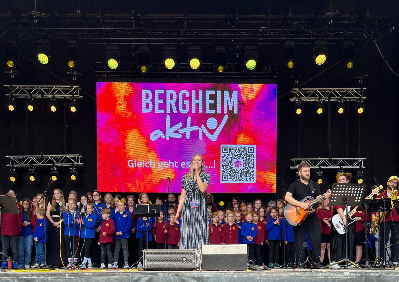 Genau dabei entsteht ein besonderes Lebensgefühl: Eines, das unsere Chorfamilie zusammenschweißt. Besonders ist auch, dass an dem Stand immer nur ein Bruchteil des Chores war, der (egal in welcher Besetzung) große Titel zum Leben erwecken konnte. Für uns war es eine bunte Mischung aus unserem Musicalprogramm, dem Sommerprogramm 2022 und witzig war die Frage, ob sich alle noch an ihre Stimmen erinnern können. Manchmal half es aber nochmal in das Lied reinzuhören und wer das Lied noch nie gesungen hatte, hatte eine Menge Unterstützung, um erfolgreich einzusteigen. Umso schöner war die Feststellung, wenn das Lied abhob und das Publikum mitging. Dies war eine gelungene Aktion mit viel Engagement und Zusammenhalt. Wir freuen uns schon auf das nächste Jahr bei Bergheim Aktiv!